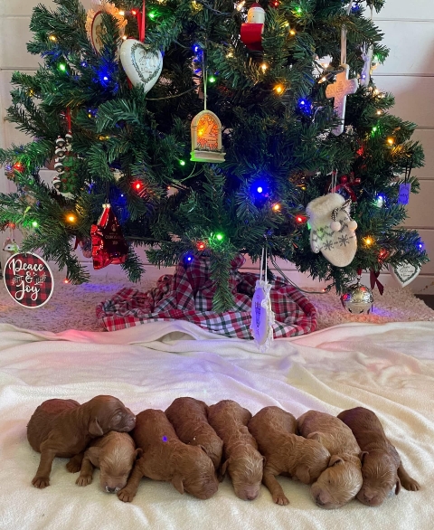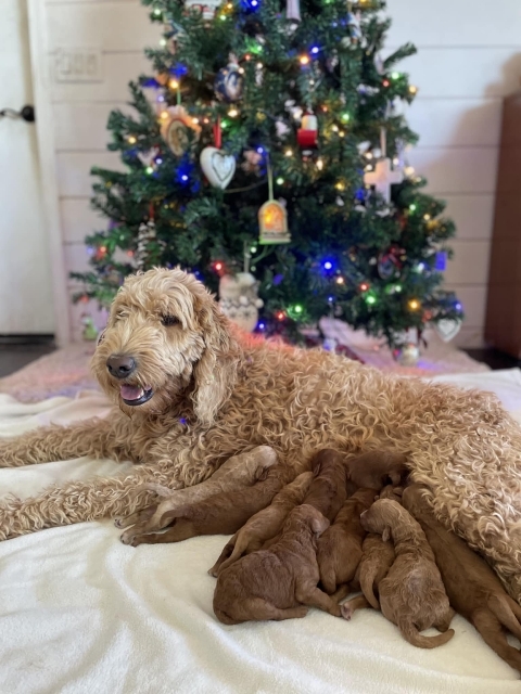 Bella just had her puppies on Oct 23rd, and they will be ready to go home just before Christmas!Puppies are reserved on a first deposit, first pick basis. Call now to reserve your place.